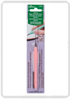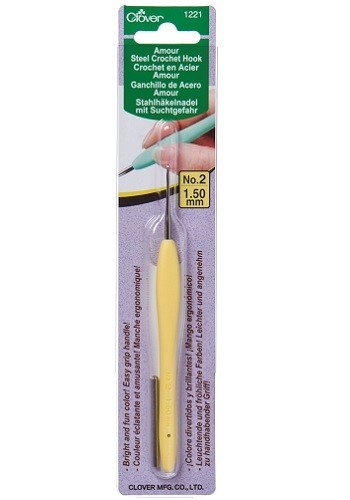 The Amour line of hooks feature comfortable easy grips in bright and fun colors. The hook is optimally shaped for smooth crocheting and the size of the hook is impressed within the elastomer grip for easy identification. The overall length of the hook is 5-1/2 inches, the grip is 4 inches long and the head is 1-1/2 inches long. Each package contains one crochet hook.