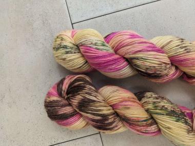 Cotton and superwash merino blend, DK weight by Amalie. Hand dyed in Israel