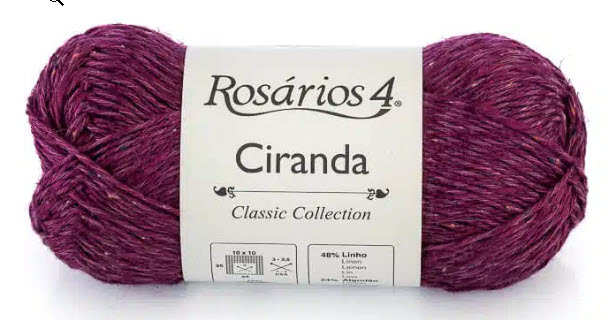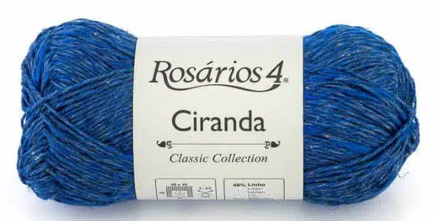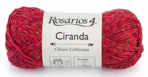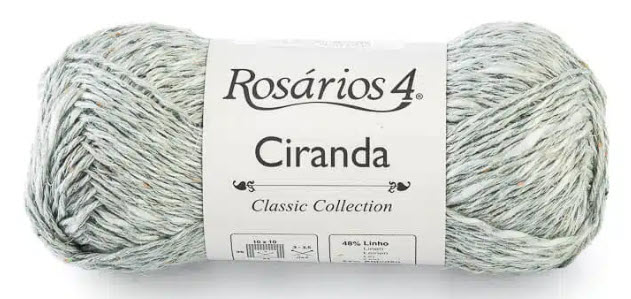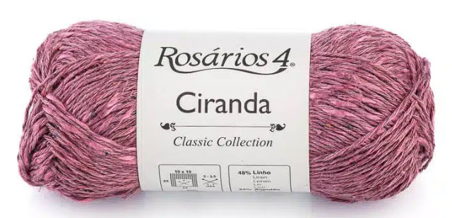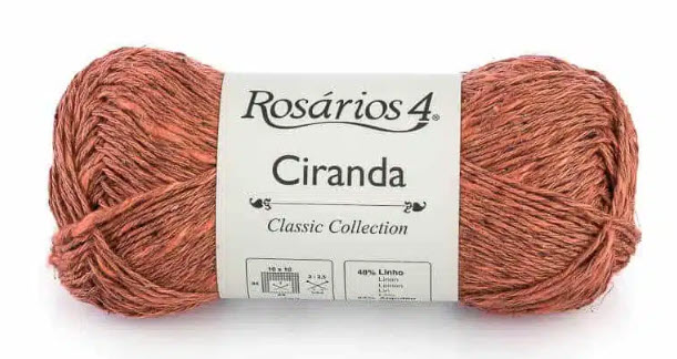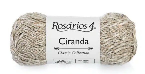 Ciranda de Rosários 4 is a summer yarn made from a blend of vegetable fibres: linen, cotton, viscose. This unique composition gives it a very interesting mottled appearance, enhanced with tweed thanks to its polyester tip