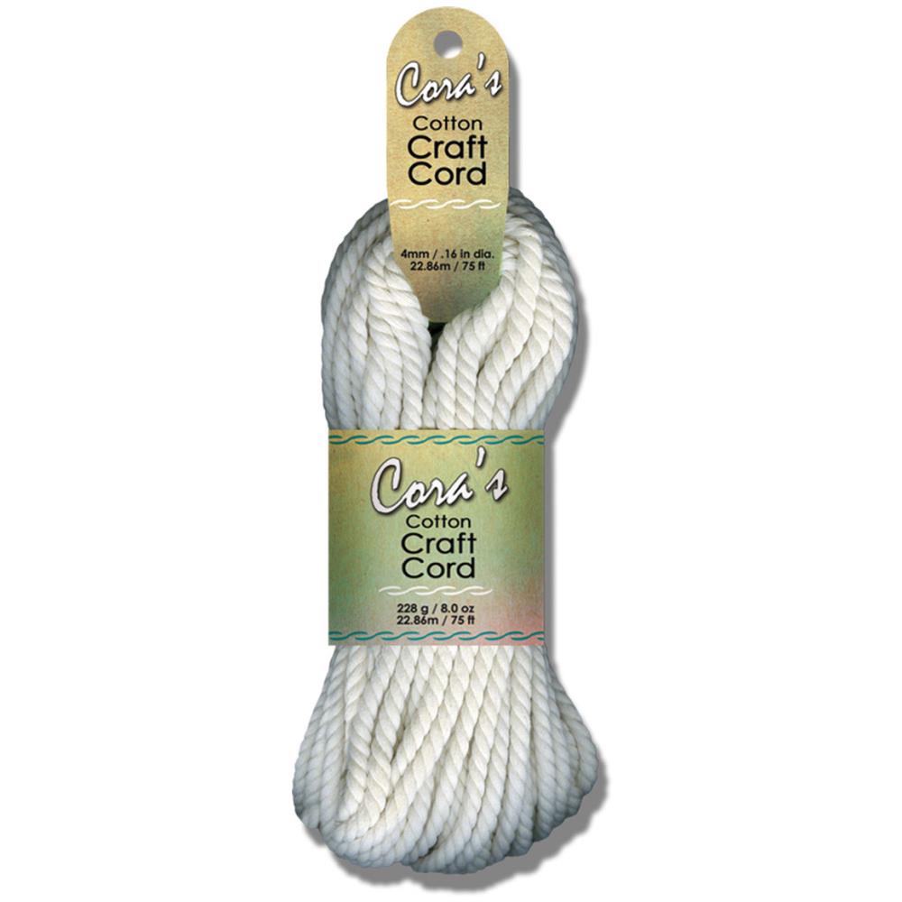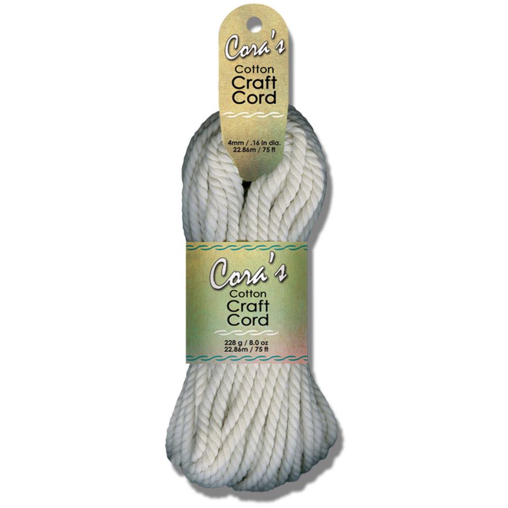 4mm (.16 in) thickness, is a twisted, 90% Cotton, 10 % Recycled Material cord, 25 yards (22.86 meters) length. This cord is most suitable for small to large macramé applications such as rugs, mats, plant hangers, purses, and wall hangings. We recommend using a Macramé Project Board for smaller knotting tasks. Similar to a Bulky (size 6) weight yarn, this cord can be used for home décor knitting and crochet projects; use U.S. 11 or 8mm needles (for knitting,) or K/10.5 - N/13 or 6.5mm - 9mm hook for crochet projects.