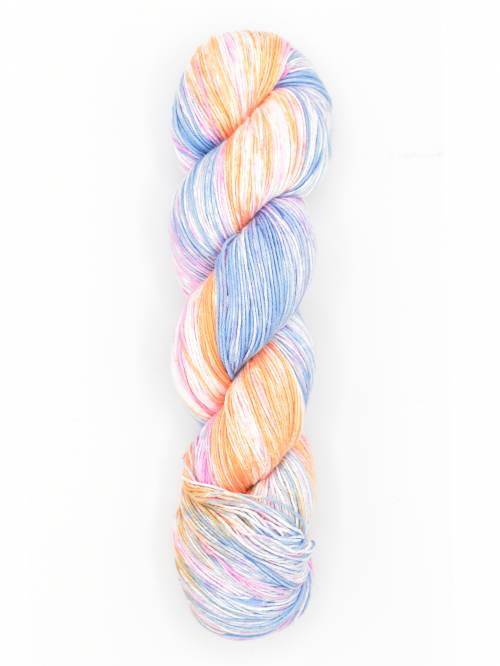 The hand-painted colors of this soft cotton yarn will put you in mind of spring flowers. This fingering weight yarn is excellent for warm weather garments and accessories