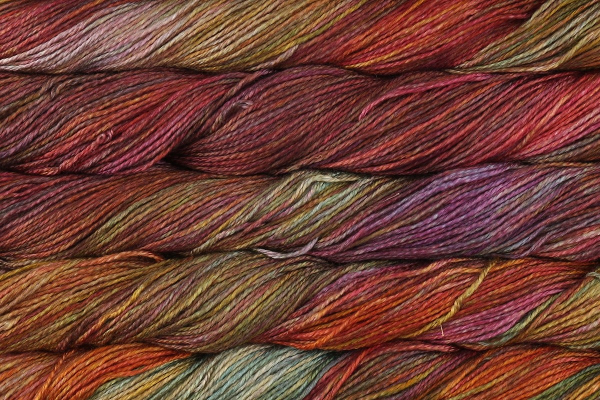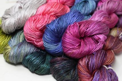 Pure Mulberry silk, the ultimate in luxury! This four-ply fingering weight yarn is as strong as it is soft. The pure silk takes dye with an unparalleled richness, for colors that will blow your socks off!