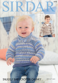 Snuggly Baby Crofter Chunky is a beautiful chunky yarn that creates a Fair Isle pattern as you knit. Snuggly Baby Crofter Chunky comes in a gorgeous colour palette, each shade is inspired by the Scottish highlands. The Snuggly Baby Crofter Chunky design collection is full of adorable styles for babies, boys and girls from birth to 7 years. It has the wonderfully soft nylon/acrylic Snuggly baby blend and is machine washable on a wool cycle.