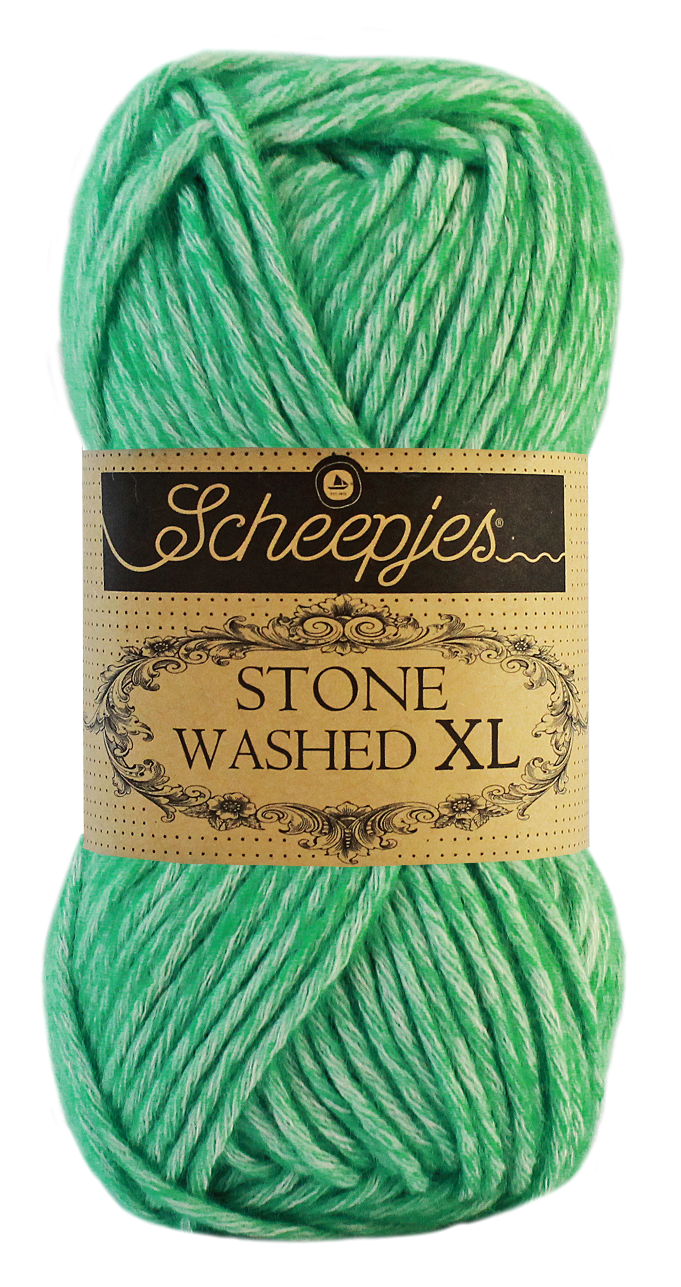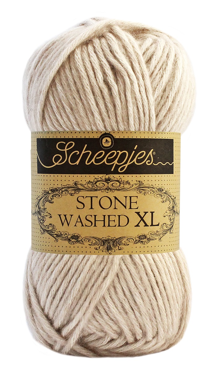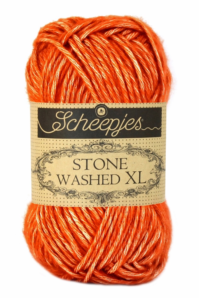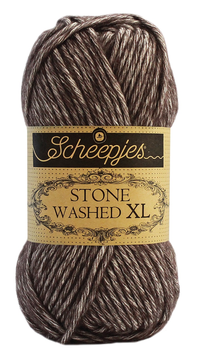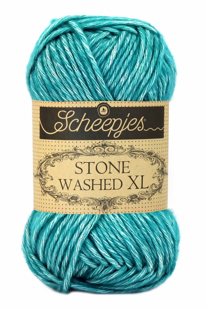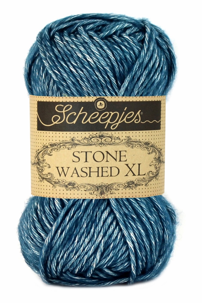 Scheepjes Stone Washed XL offers fabulous tonal colors on a machine-washable base of natural cotton and acrylic. The acrylic is blown in a tube while the yarn is being spun, so it has a very unique construction. Stone Washed XL is an aran weight yarn that's perfect for all kinds of crochet and knit projects, including warmer-weather garments, wraps and shawls, and even blankets and afghans. Made in the Netherlands