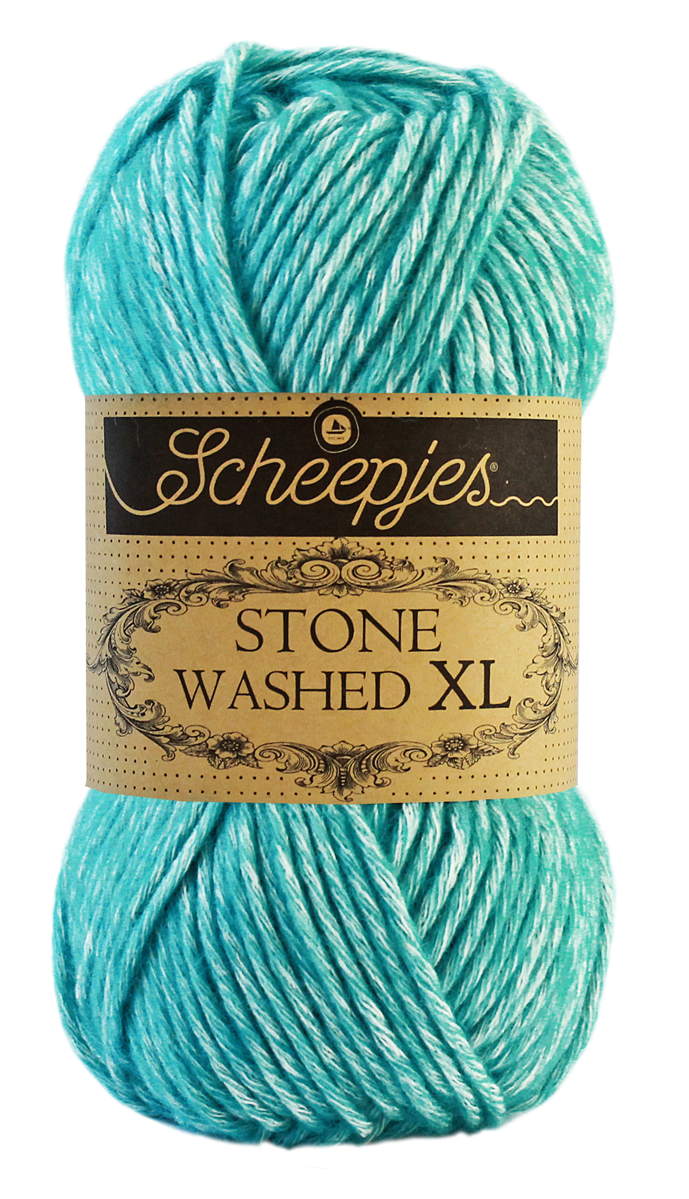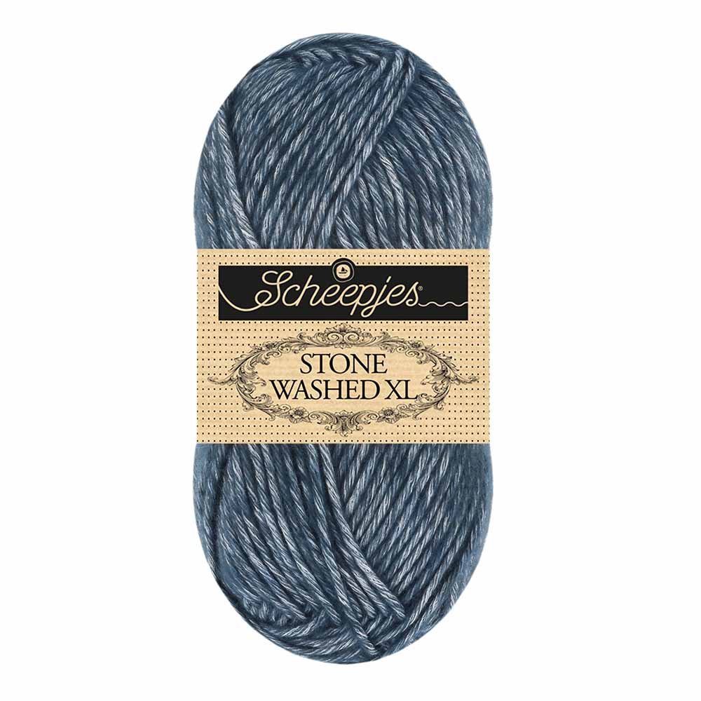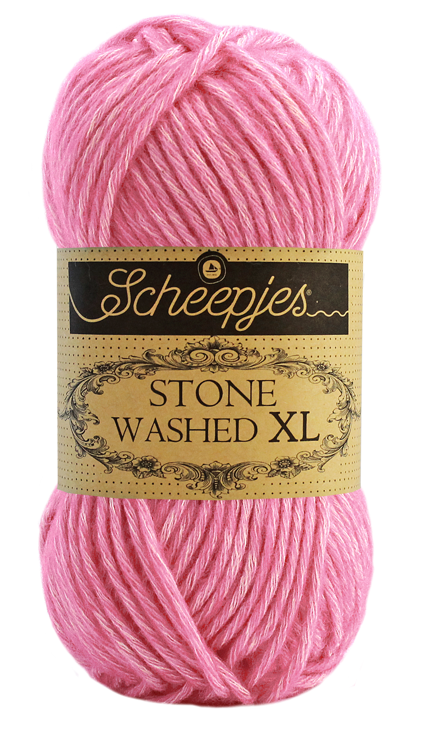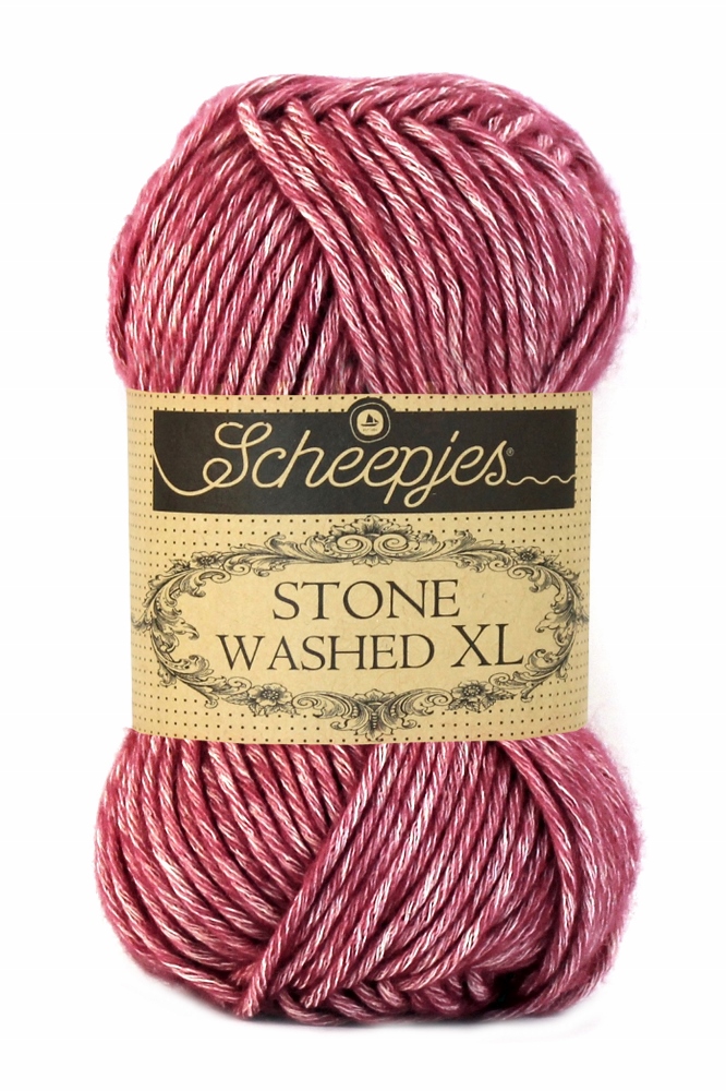 Scheepjes Stone Washed XL offers fabulous tonal colors on a machine-washable base of natural cotton and acrylic. The acrylic is blown in a tube while the yarn is being spun, so it has a very unique construction. Stone Washed XL is an aran weight yarn that's perfect for all kinds of crochet and knit projects, including warmer-weather garments, wraps and shawls, and even blankets and afghans. Made in the Netherlands