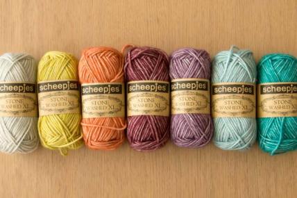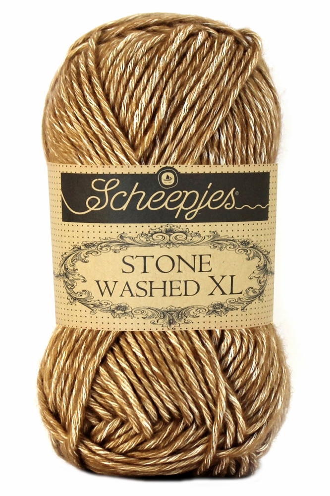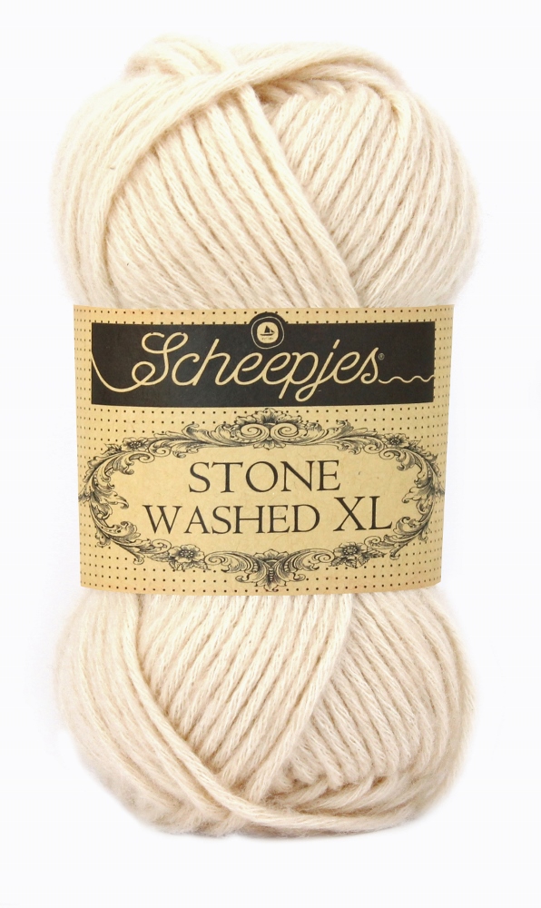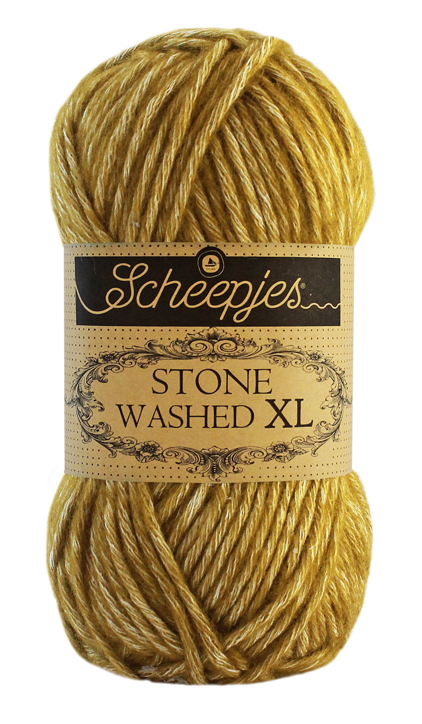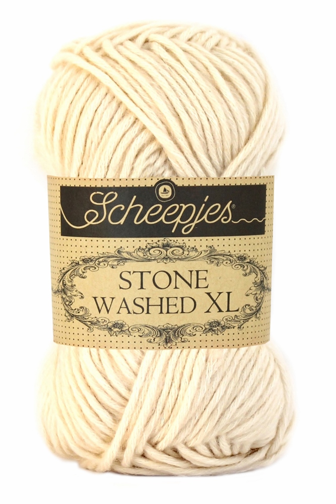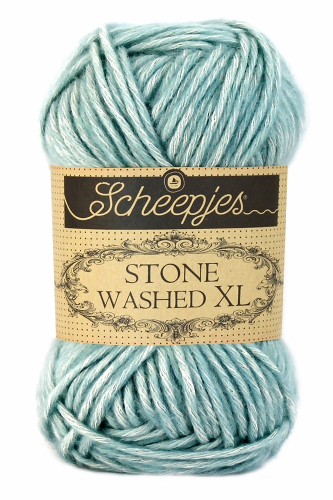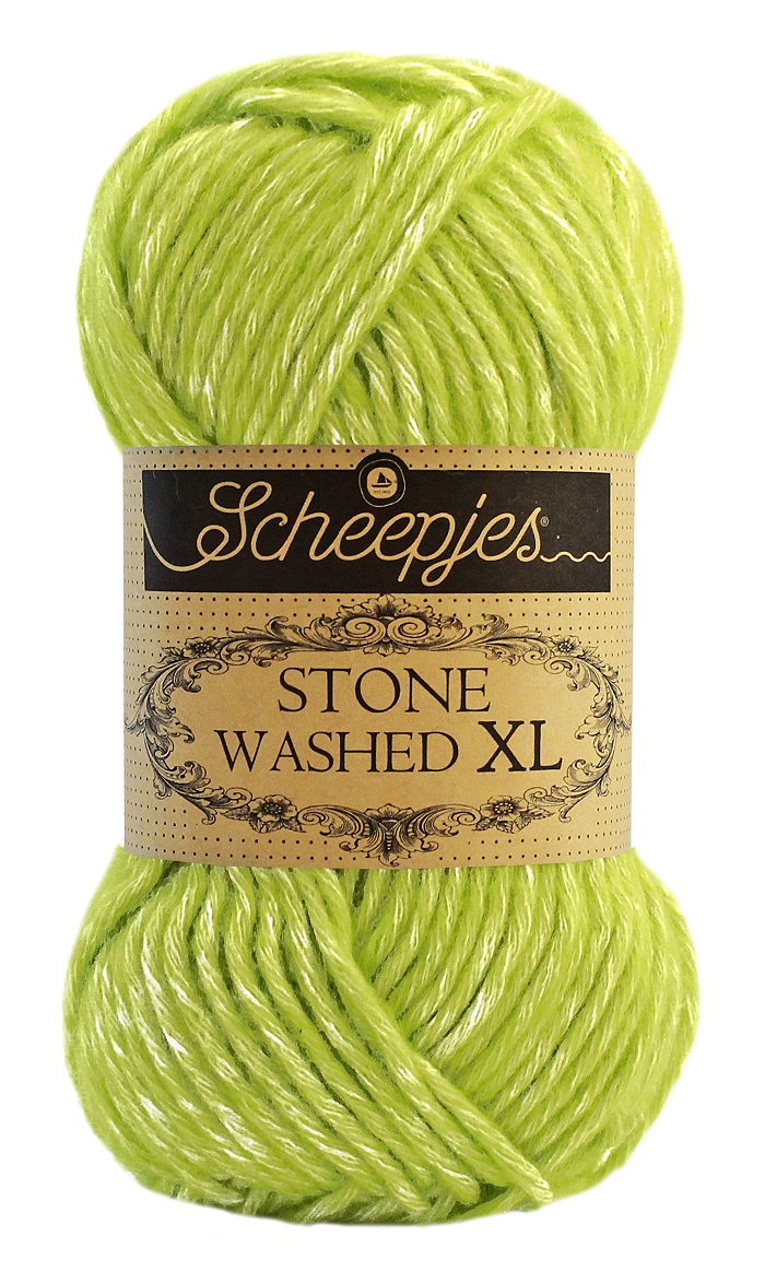 Scheepjes Stone Washed XL offers fabulous tonal colors on a machine-washable base of natural cotton and acrylic. The acrylic is blown in a tube while the yarn is being spun, so it has a very unique construction. Stone Washed XL is an aran weight yarn that's perfect for all kinds of crochet and knit projects, including warmer-weather garments, wraps and shawls, and even blankets and afghans. Made in the Netherlands