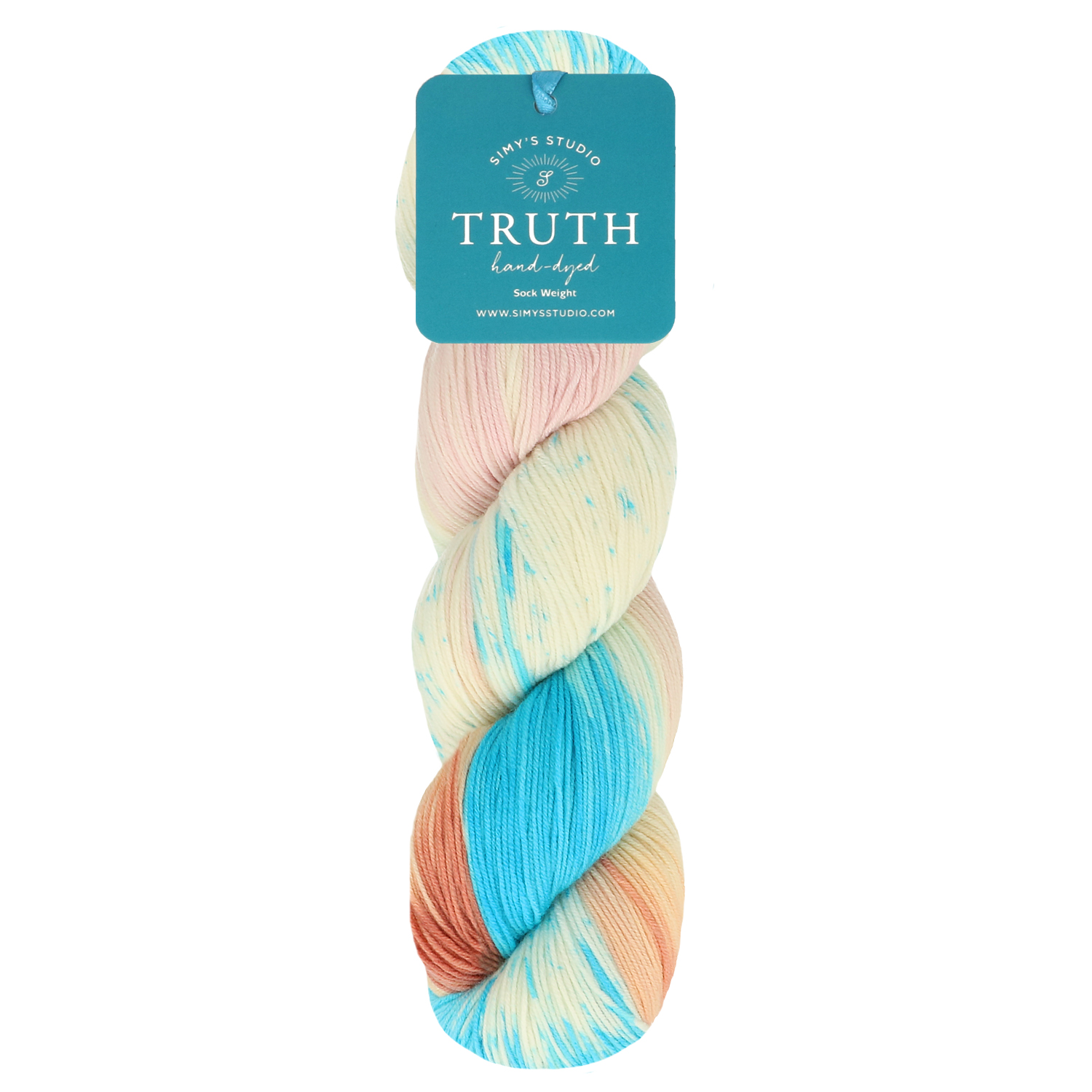 Simy's Studio Truth Sock is a hand-dyed yarn with a palette of 15 captivating colours. Each ball features colour blends resulting in a marbled design with small multicoloured stripes. Bring a fun touch to the winter season.