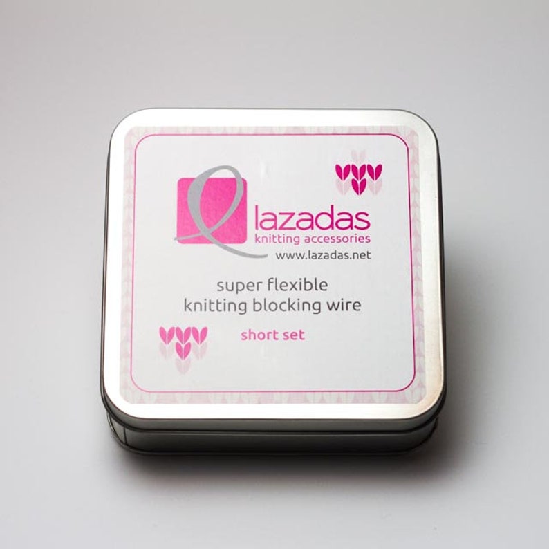 ערכת חוטי בלוקינג מיקצועית מבית Lazadas, משמשת לעיצוב פריטים לאחר הסריגה. בלוקינג הינה טכניקה להשטחת והגהצת הסריג לפני החיבור והגימור.