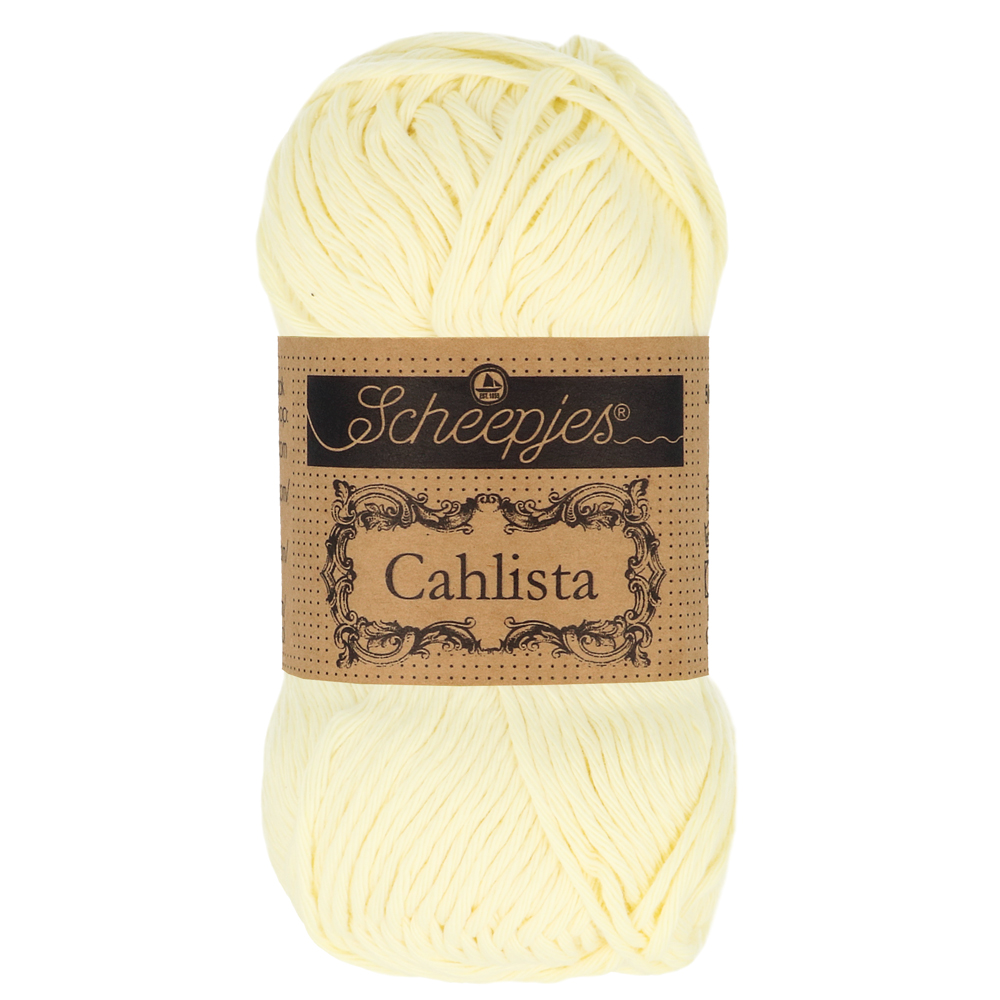 Cahlista ("יפהפייה"), חוט 100% כותנה לא ממורצרת בעובי אראן. לחוט טויה אופטימלית המונעת פיצול אך שומרת על מראה רך ונשפך.