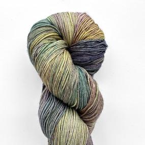 חוט גרביים צבוע ביד מבית מלבריגו, רך וטווי twisted. מורכב מתערובת מרינו סופרווש (ניתן לכביסה במכונה) וניילון.